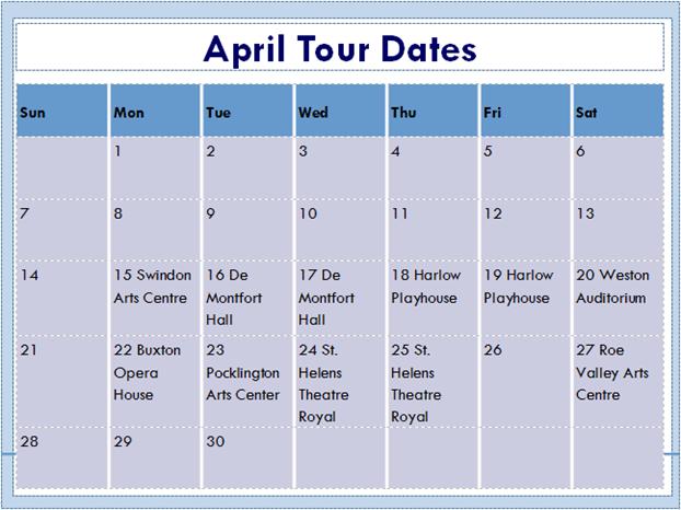 Please look online at www.icarustheatre.co.uk/current_season.html for May tour dates or to book tickets
